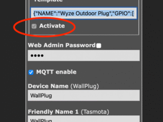 Once it flashes successfully it creates a wifi hotspot called “Tasmota” with a bunch of numbers behind it. Connect to this wifi then navigate to 192.168.4.1 in a browser. A page will populate asking for your wifi credentials so it can hook to your network. Then you can configure the device. The easiest way to do this is to apply the template file. The template configuration on the Tasmota Wyze Outlet page IS NOT THE BEST ONE. Since the incorporation of Tasmota 9.5 manual button pushes (resistive pull up) is now supported.