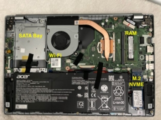 In addition to that there is an unpopulated SATA drive bay where you can add an additional hard drive. There are 8GB of RAM, 4 of which is built into the main board and a 4GB (PC4-3200) stick in the DDR4 slot. You could change that out to a 16GB stick for a total of 20GB. Lastly you could change the wifi chip if you wanted to.