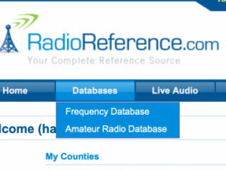 On the main page right under where it says RadioReference.com on the top left is a blue tab. The second tab to the left says Databases. It has a subcategory called Frequency Database which is what we want to select. Then Select the Browse button which throws you to a map of the US. Click on your State and then your County.