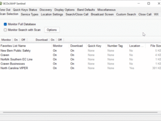 Under monitor those lists may be set to OFF however you can toggle them ON here. No point in selecting Favorites and uploading them and then having to toggle them on in the scanner menus. Notice “Monitor Full Database” is selected. If checked it will bring in EVERYTHING. I usually leave it checked and then toggle it off in the scanner (which is just the opposite of what I just told you to do). 😃