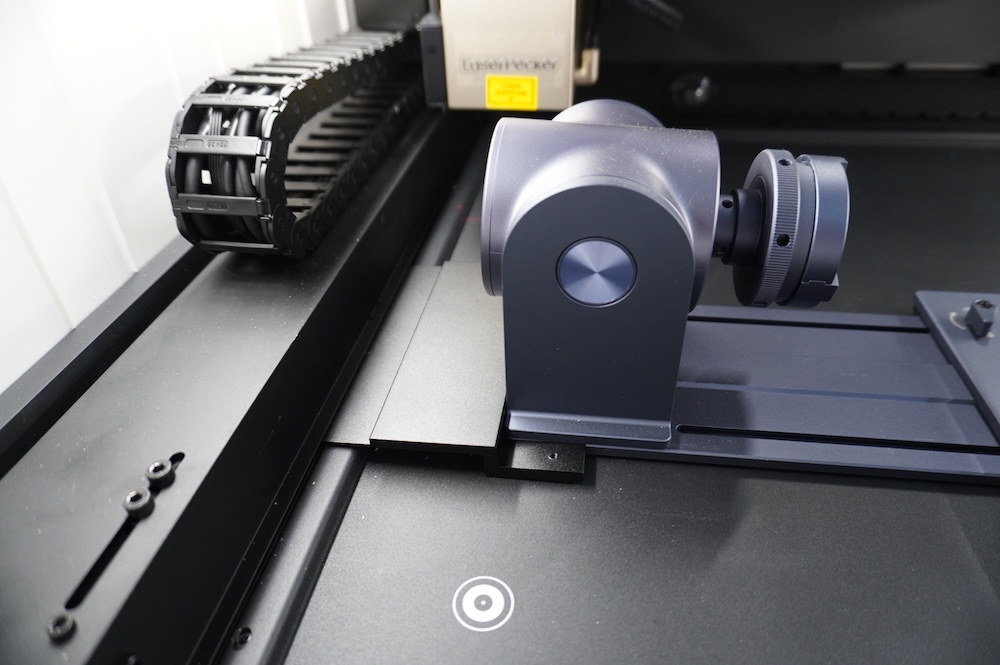 Oh, one more thing about the rotary extension. I send all my love to the engineer who designed the latch mechanism to move the tower on the end. I Love You, man. If you’ve been reviewing lasers as long as I have you recognize this as an amazing design feature. Did I say, “I Love You, man” (Or hopefully a woman designed this. Sounds better for me.)