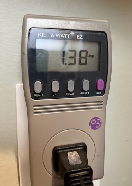 Consequently, I thought this was my gotcha. Anything that has a drying function is likely to consume tons of electricity, right? I dug out my trusty Kill A Watt Meter to check the power consumption of the D100. Below are my results.